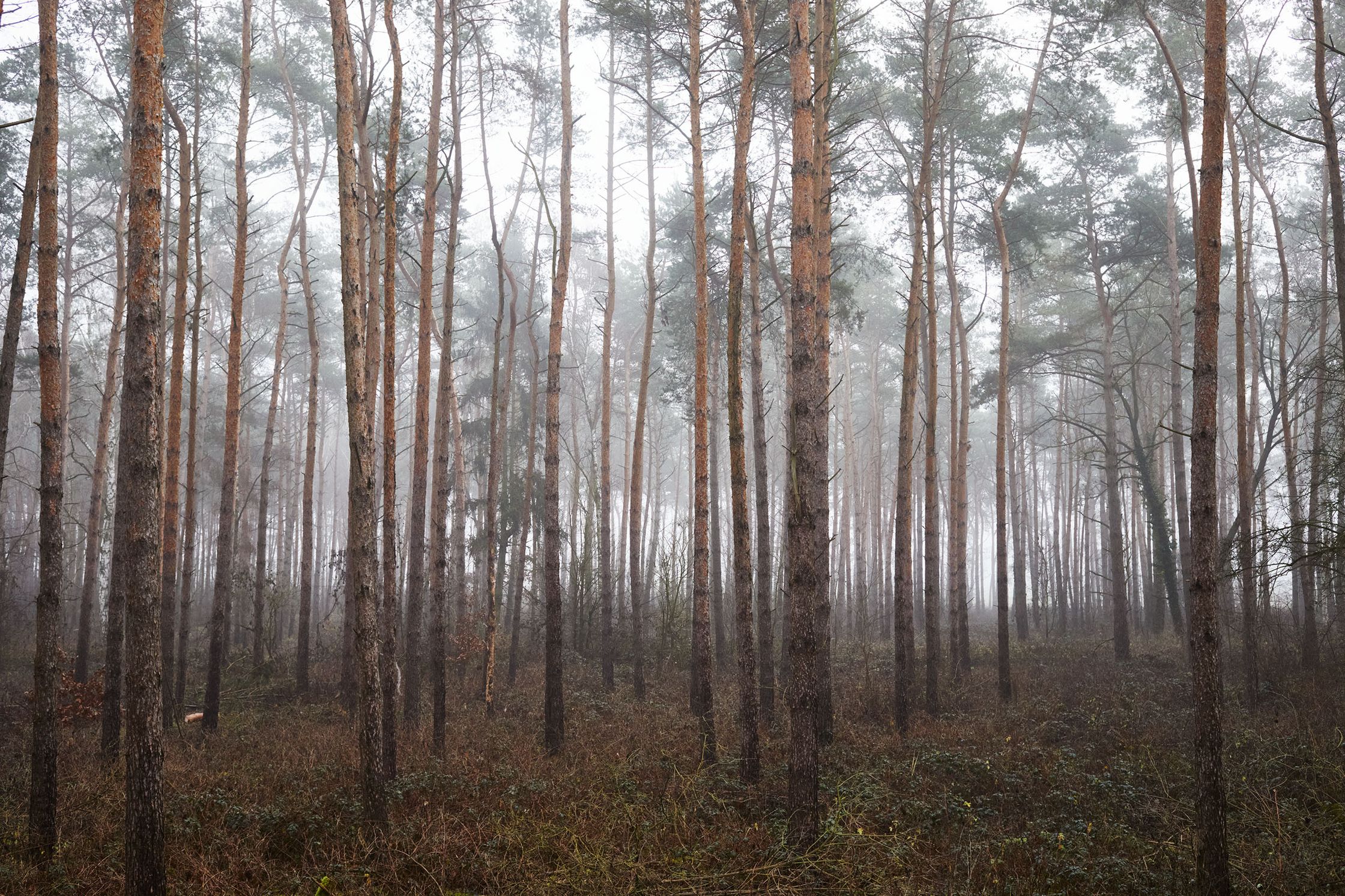 Was geschieht eigentlich in dieser dünn besiedelten Region? Wollen wir es überhaupt herausfinden, oder begnügen wir uns mit Vorurteilen? Von außen scheint es, als gäbe es keine Möglichkeit, das Leben in Brandenburg wirklich kennenzulernen. Von innen entsteht das Gefühl, nicht sichtbar zu sein. Diese neblige Situation verdient eine Diskussion. Die Fotografien von Alena Sternberg, die Kiefernwälder zeigen, können ein Ausgangspunkt dafür sein.